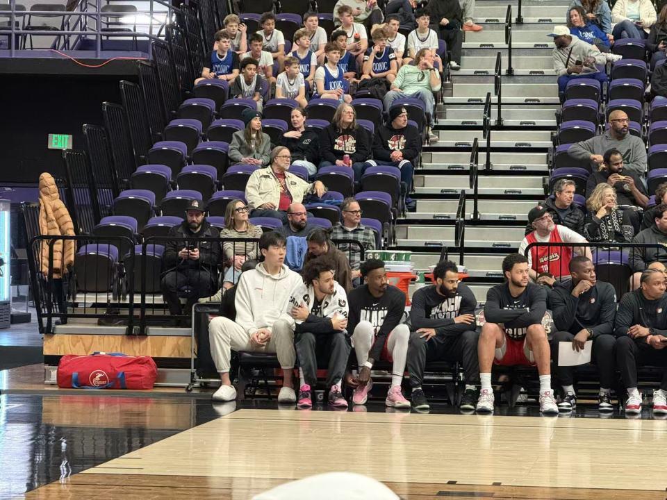 2月23日对圣克鲁斯勇士一战,杨瀚森首发出战29分钟,投篮9投5中,罚球3中1,最终贡献了11分、12个篮板、3次助攻和2次盖帽,但同时也有5次失误,最终混音113-118不敌勇士。今天的比赛,杨瀚森穿便装场边观战。